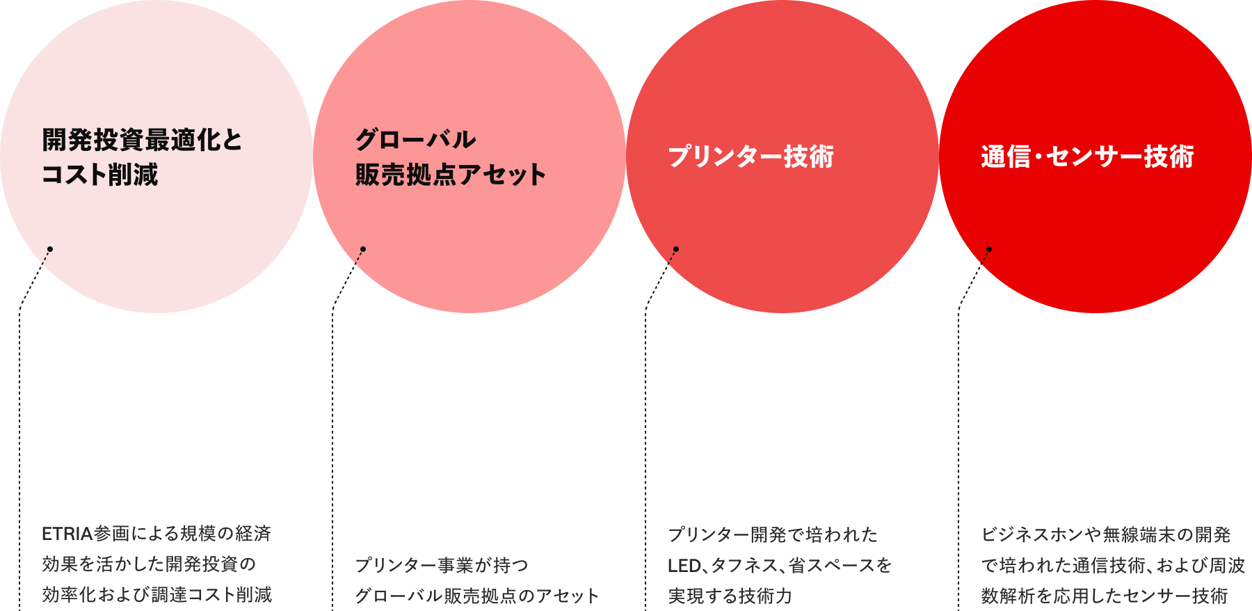 市場の縮小が進むプリンター事業とビジネスコミュニケーション事業は、商品ラインアップの見直しを行い、固定費のスリム化を進めることで収益力強化を図り、安定事業化を進めます。 |