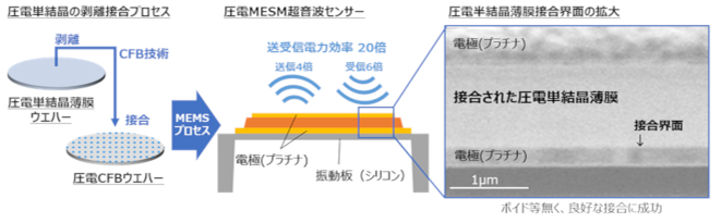 OKIとI-PEX Piezo Solutions株式会社(以下、IPS社)(注1)は、圧電単結晶薄膜とSOIウエハーの接合技術を確立し、超音波センサーなど圧電MEMSデバイスの性能を飛躍的に向上させる「圧電単結晶薄膜接合ウエハー」の試作に成功しました。