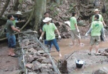 環境保護への取り組みと地域貢献を目的に、タイ北部のランプーン県内の3箇所にコンクリート水堰止め塀を設置しました。設置作業には、ドットプリンター用印字ヘッドの生産拠点であるOKIプレシジョン・タイランドと、プリンターと複合機の生産拠点であるOKIデータ・マニュファクチャリング・タイランドのランプーン支社より、112名の従業員が参加しました。