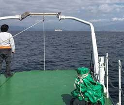 OKIは開発した水中音響通信技術を用いて、2023年3月に駿河湾海中の海域で実証実験を行いました。本試験では試験船2隻から通信用の送受波器を海面から約15mに吊り下げた状態で、2隻間の距離を約2km離してデータ送信を行い、通信速度32kbpsで安定した状態が確保できることを確認しました。