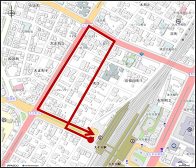 ルート① 大牟田駅西口周辺のまちなかエリア(全長約1㎞)