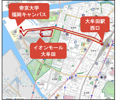 往路:大牟田駅西口→イオンモール大牟田→帝京大学福岡キャンパス