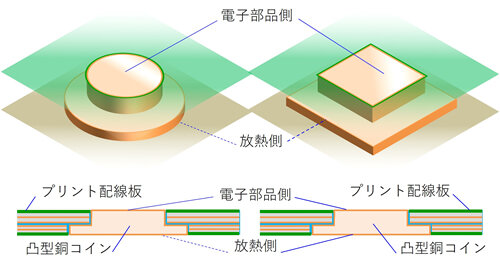 従来の55倍の放熱性を実現する「凸型銅コイン埋め込みプリント配線板技術」を開発