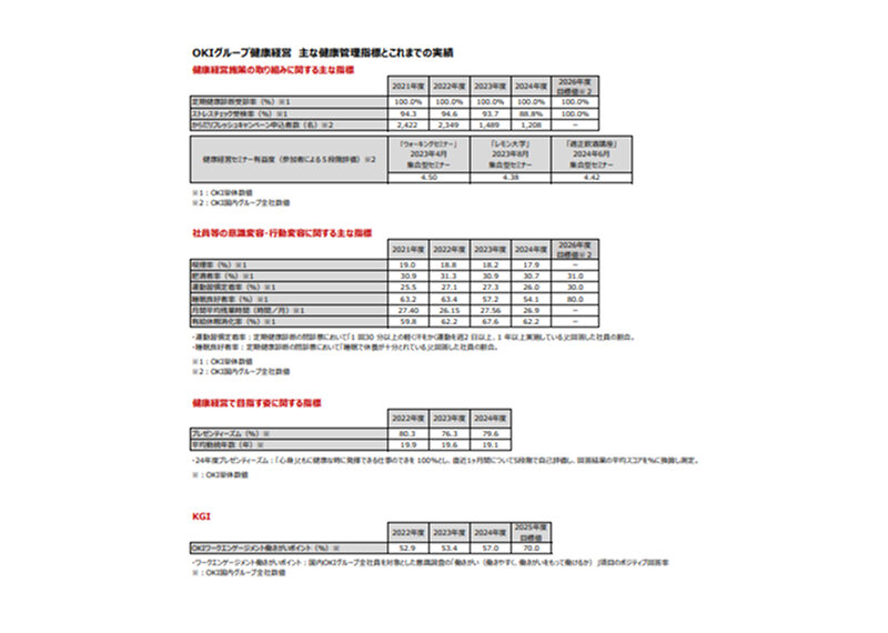 OKIグループは、経営トップが健康経営最高責任者に就き、OKI人事総務部担当役員を推進事務局責任者としています。