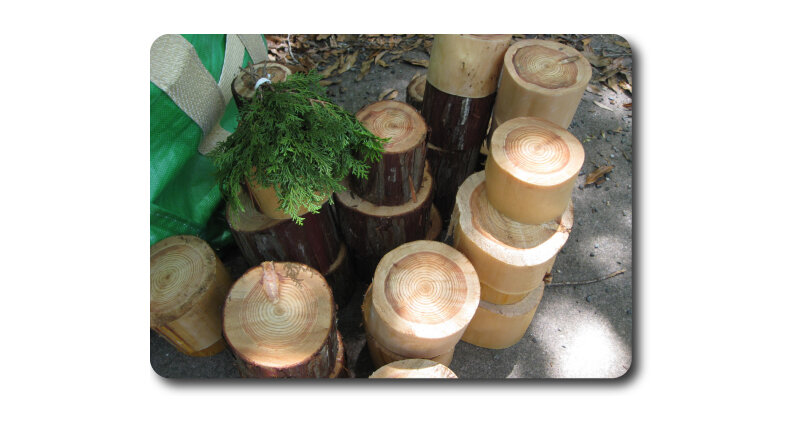 その後、倒した木を同じ長さに切る玉切り作業では、間伐した木を有効に活用するために、でき上った木の皮もむいて伊豆市役所に提供しました。同市の玄関口でもある修善寺駅(伊豆箱根鉄道)や、市内保育園の花壇飾り用に使用される予定です。