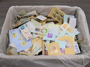 使用済み切手 約4.0kg 1kgにつき1,500円で換金され、バングラデシュやネパールでのハザードマップ作りの受講料として活用 約6,000円相当に換金