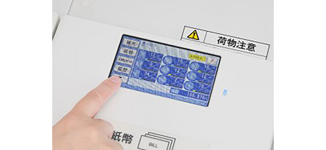 今回発売した「CR-30」は、従来の一体型硬貨紙幣つり銭機「CR-20」の後継機として業界トップクラスの処理スピードとメンテナンス性を継承しながら、分離型硬貨紙幣つり銭機「CR-22」と同様に紙幣部と硬貨部を分離しており、設置スペースや店舗のレイアウトに応じた柔軟な設置が可能です。直感的に操作できる4.3インチの大型タッチパネルディスプレイによって使いやすさを向上させるとともに、つり銭補充の手間を軽減するため、従来機より硬貨容量を増やしました。また、機械操作に不慣れなお客様もセルフレジやセミセルフレジをスムーズに使用できるよう、LEDで操作を誘導するなど、現金の出し入れにおける操作のしやすさ、わかりやすさを実現しています。