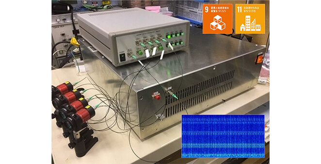 光通信で培った高度な光通信技術を応用し長距離・広範囲の一括計測が可能な光ファイバーセンシングや多点型レーザー振動計(写真1)、音声通信で培った波形解析・信号処理技術に基づくエリア収音技術、3D LiDARの点群情報解析による現場の状況・安全監視技術、天候などの環境条件にロバスト(強靭)なビジョン系AI技術などを開発している。また、光電子融合技術により培ったシリコンデバイスの光回路設計技術をバイオ分子の検出に応用し、メディカル分野での新規事業創出などを目指している(写真2)。