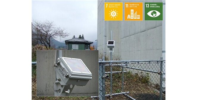 現場で生じるデータをエッジ間で連携・処理しながらサービスとして提供するためには、ネットワーク技術が重要になる。OKIは、IoTデバイスを現場で面的に接続する920MHz帯マルチホップネットワーク技術を開発し、キャリア網の届かないエリアでも、無線ネットワーク網を構築可能である。これにエナジーハーベスティング技術を加え、通信・給電配線が不要なゼロエナジーIoT技術を開発している。山間部のインフラや河川などの広域常時監視のための通信・電源確保の課題を解決し(写真3)、年間の日照量に基づいた太陽電池と二次電池の最適設計で、設置自由度の高い小型なデバイスを実現している。さらに、これにカメラや多様なセンサーを接続することで、さまざまなインフラのモニタリングに対応を拡大している。