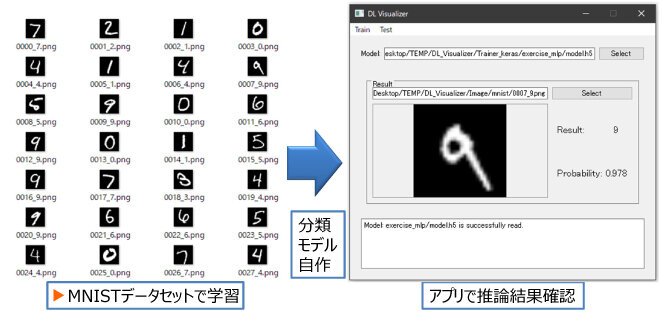 前半の講義パートでは、AIの種類やその原理、取り巻く環境など概論から始め、次にAIを身近に感じてもらうために参加メンバー自身が普段業務で使用しているノートパソコン上にPython環境を構築する。参加者自らのノートパソコンで講義を通して簡単なディープラーニングの学習と推論を実践し、AIの作り方と使い方を習得する(図2)。