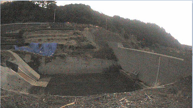 砂防ダムに試験的にZE-GW高感度カメラ付きを設置し夜中に撮影した写真を写真3に示す。午前2時に撮影したにもかかわらず、現場の状況を十分視認できている。