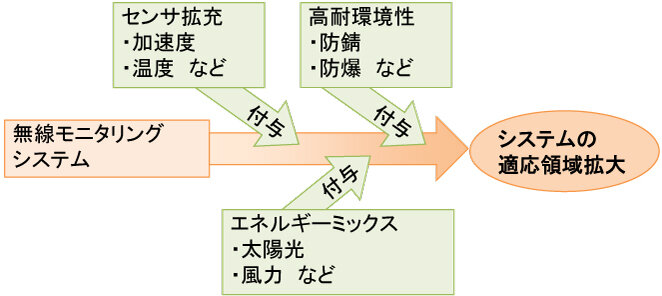 今回開発する船舶用無線ひずみモニタリングシステムは、従来のZE-GWシリーズと比較して、日常環境の屋外とは異なる過酷な環境下でも、容易に設置可能なことが大きな特徴である。この特徴を活かして、洋上風力発電などの海洋構造物のモニタリングや、陸上の構造物ヘルスモニタリングにも適用が可能と考えている。