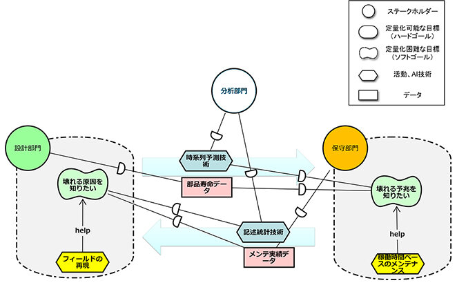 そこで本稿では、これらステークホルダーごとに個別管理されたデータと目標、そして適用するAI技術を統一的に整理することで、分析作業を効率的に取り組むことを目指す。そのためにOKIが考案した方法論、データ活用ゴールモデリングについて説明する。