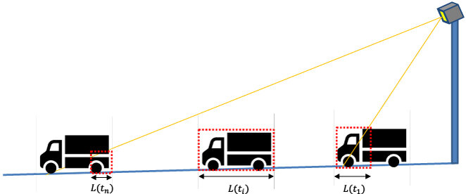 そこで、①を対策するために、自社で開発した「車両先頭・後尾位置推定方式」(特許第7078066号)を利用した。そして、②を対策するために、同一車両を追跡する間に計測された車長の最大値を利用することにしていたが、実際の車長と数mの誤差が生じることが判明したため、その対策を検討した。さらに、③では、特に速度で大きな誤差が生じたため、速度安定化を施すことにした。以下、①~③の対策を説明する。