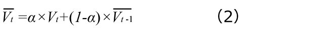は平滑化後の車速[km/h]、αは重み(0.0≤α≤1.0)、windowはウインドウサイズである。
