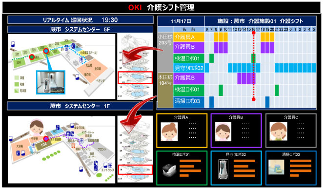 一方、図2に示すように、OKIはリアル(現場)で業務特化した領域に多くのお客様を持ち、エッジ領域のお客様課題へのアクセス力に強みをもつ。エッジ領域の現場課題をお客様にヒアリングした結果、現場の業務特性をスケジュール・リソース・タスクの観点でリアルタイムにマネジメントできる運用環境を遠隔運用コンソールに構築できることが必要であると判明した。さらに、運用センターの業務効率を高め、想定外の異常にも迅速に対応できるように、現場指示のアクションプランがシステム側のモニターに表示され、それを選択することで現場指示が実行できることも必要である(図3)。