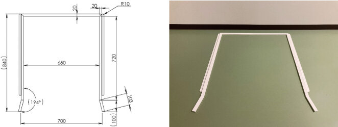 ①には、台車のフレームがAMRのセンサーに干渉すると誤作動を起こすため、フレームを逃がす形状とした。