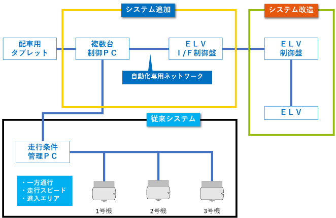 既存エレベーターを使用した搬送システム
