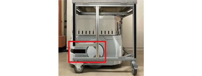 また、搬送中にキャスターが旋回すると障害が発生するため、車輪の回転と旋回を一度に固定できるキャスターを採用した。