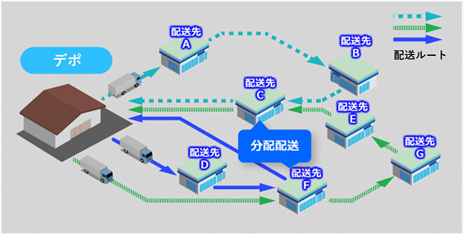 配送ルート最適化とは、本稿では総走行距離が最小となる配送計画を立案することと定義する。配送先や需要量などの条件がほとんど変化しない場合、配送計画立案は最初に一度だけ行い、あとは毎回その計画に従って配送すれば良い。逆に条件が毎回変動するような場合、最適な配送ルートも変化するため、基本的に毎回配送計画を立案する必要がある。いずれの場合にも、配送計画の立案は物流会社の配車担当者が経験や勘に基づいて人手で行っていることが多い。人手による計画は必ずしも効率的ではないので、これを改善することが課題である。