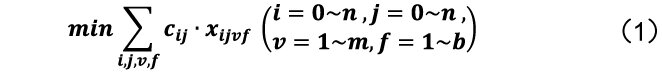 •xijvf:車両vがf便目に、配送先iからjへ移動したか否かを表す0-1変数