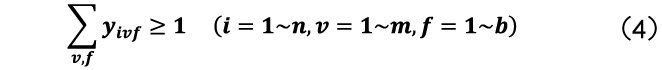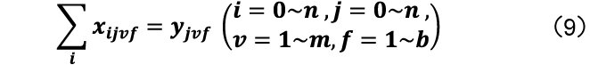 •yivf:車両vがf便目に配送先iを訪れたか否かを表す0-1変数