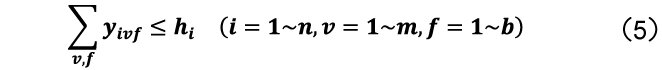 式(4)及び(5)は配送先iに1台以上hi以下の車両が訪問することを示す。