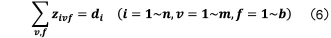 式(6)は配送先iへ配送する荷物量と配送先iの需要量が一致することを示す。