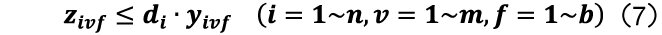 式(7)は配送先iを訪問する車両だけがその配送先へ荷物を配送できることを示す。