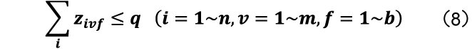 式(8)は1台の車両が1便で配送する荷物量が最大積載量以下であることを示す。