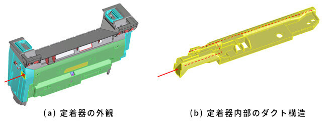 また、定着器の冷却機構は、本体側面の冷却ファンからのエアフローを左右均等に分配するダクトを新規に開発し、定着器内部に実装することで装置の小型化に貢献している(図4)。
