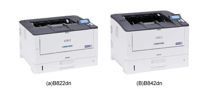 A3モノクロLEDプリンターB822/B842(写真2)は、国内の官庁・自治体や医療・金融市場などで業務プリンターに不可欠な帳票印刷への対応能力を強化した製品である。