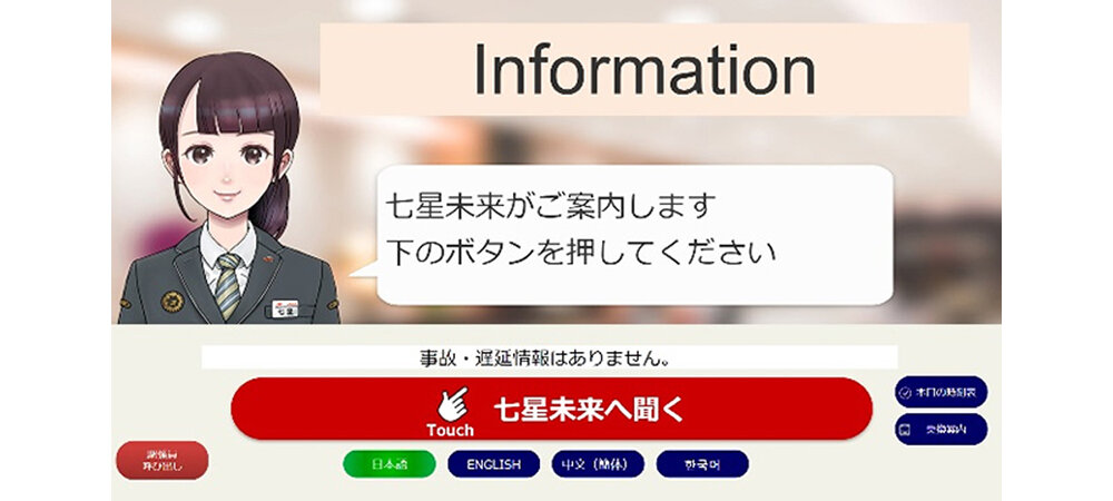 OKIは、九州旅客鉄道株式会社(以下 JR九州)と、AIを活用したお客さまご案内システム「AI駅員」のサービス実現に向けた実証実験を実施しました(2023年10月2日~12月24日)。本実証実験では、鹿児島本線 香椎駅、長崎本線 諫早駅に「AI駅員」を搭載した端末を設置し、AI対話エンジンによる案内の検証、および駅係員によるリモート案内の検証を行い、お客さまのニーズにあわせた対応や海外からのお客さまへの多言語案内など、駅をご利用いただくお客さまへのサービス向上を目指します。