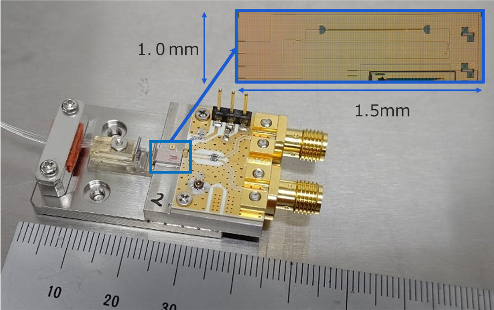 シリコンフォトニクス技術を用い、通信用の光トランシーバや各種光センサーの超小型化に取り組んでいる。図8は、非接触振動計測が可能なレーザー振動計に必要とされる光素子を集積化したシリコンフォトニクス集積回路であり、僅か1.5mm×1mm規模のチップ内に位相変調器や受光器、偏光ビームスプリッターなどが集積されている。シリコンフォトニクス技術による超小型化は、ドローンやロボットへの搭載を可能とし、たとえば工場設備の点検・維持管理を無人化するなど、スマートファクトリー分野の「労働力不足」対策として有効である。