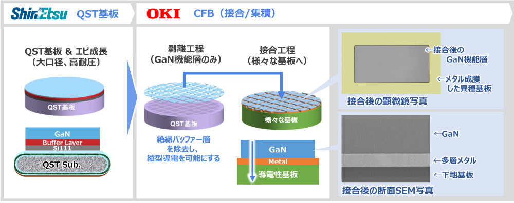 本稿では、カーボンニュートラル社会の実現に向けて期待される次世代パワーデバイスの動向から、GaN(窒化ガリウム)デバイスの課題を明確にした後、信越化学工業株式会社殿(以下、信越化学)のQST(注2)基板とOKIのCFB技術との共創による縦型GaN(窒化ガリウム)デバイス実現に向けた新技術について紹介する。