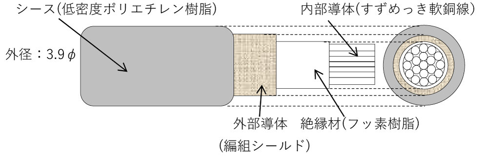 このセンサーケーブルは屋外で使用されるため、紫外線による劣化を防止できる耐候性を付与したポリエチレンシース材を最外層に被覆している。外径はφ3.9で、細径性は大きく、敷設時の取り回しや引き廻し性も良く、扱いが容易である。