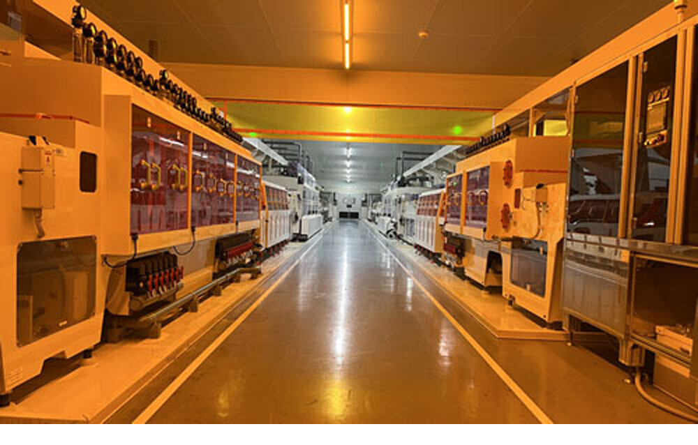 上越事業所内の製造エリアを3300平方メートル増床(従来比約1.2倍)し、極薄材料対応表面処理ライン新設、ダイレクトイメージ装置を増設しました。また、回路形成プロセスの動線を最適化し、生産能力は従来比の約1.4倍になり、生産品質も向上します。さらに、0.03ミリメートルの極薄材料から8ミリメートルの厚板材料までの自動搬送およびダイレクトイメージ装置の増強により、高精度回路形成と高精細エッチングラインによる線幅精度向上(伝送特性安定化)を実現させ、あわせて、高精度穴明け装置の増設により、極小径穴加工(φ0.01以下)の能力が向上し、110層を超える超高多層、高精細基板の提供が可能となります。