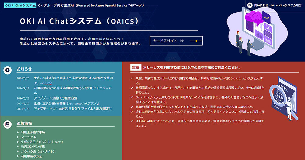 この生成AI基盤は「OKI AI Chatシステム」という名称で2023年10月に社内公開した(図1)。