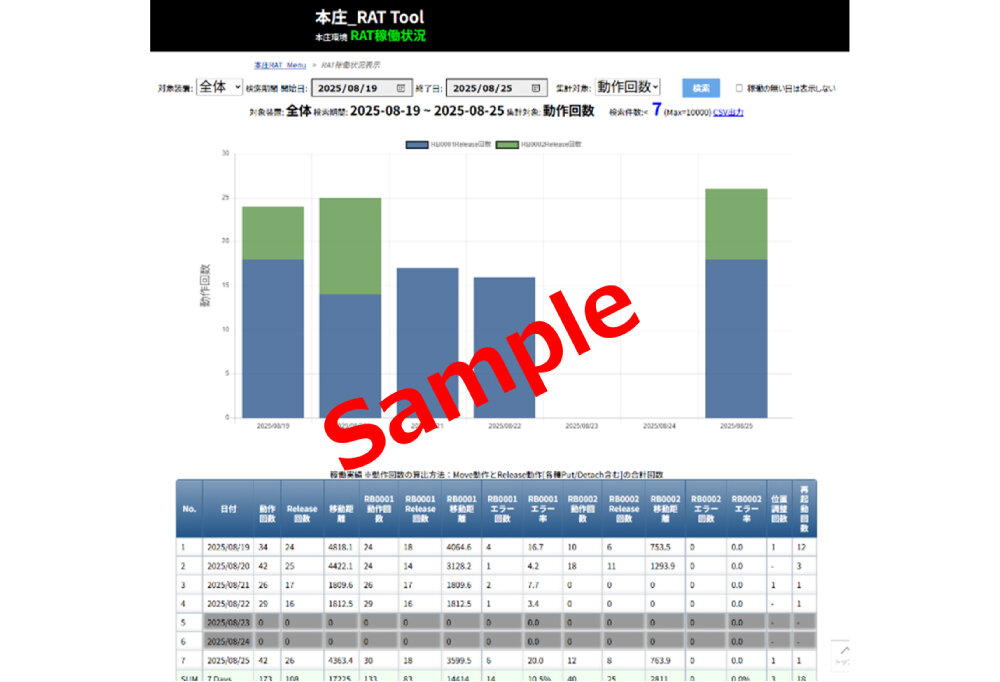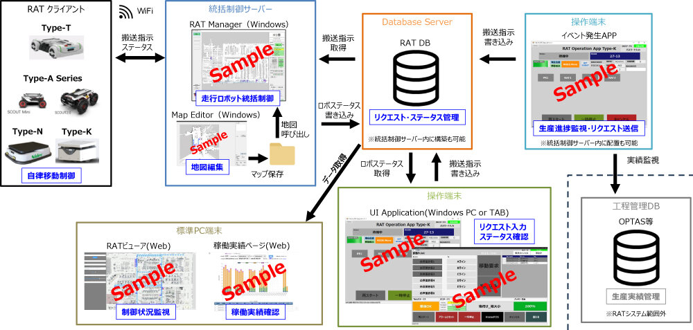 本稿では、これらの課題を解決するために、開発・導入したRATシステムについて述べる。本システムは、多種多様な現場要求に応えるため、複数メーカーの自律搬送ロボット(AMR:Autonomous Mobile Robot)を一元的に制御可能な上位システムであり、その概要や特徴について紹介する。