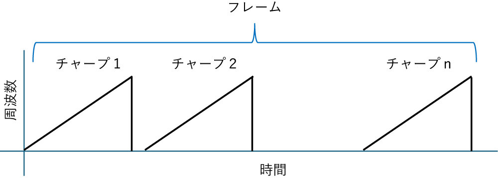 FMCWレーダーは、周波数変調を施した連続波を用いるセンシング技術である。送信信号として用いる「チャープ」は、時間軸に対して周波数が線形に増加する特性をもつ(図3)。