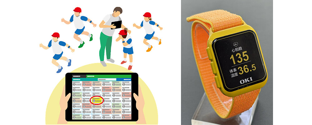 フェーズ2では未病・予防・看護支援をテーマとする。教育分野では体育の授業において、先生や子供たちが心拍数などのバイタル情報を活用する新たな体育ICTソリューションの商用開発を進めている。ここでは、920MHz帯の無線技術を活用したウェアラブル端末(写真2)を共創パートナーとの連携によって超短期間での開発を実現する。医療分野では、看護師など医療現場の業務負荷軽減に着目した尿監視システムの商用化に向け、大学病院や病院と協力しながら実証実験を繰り返している。