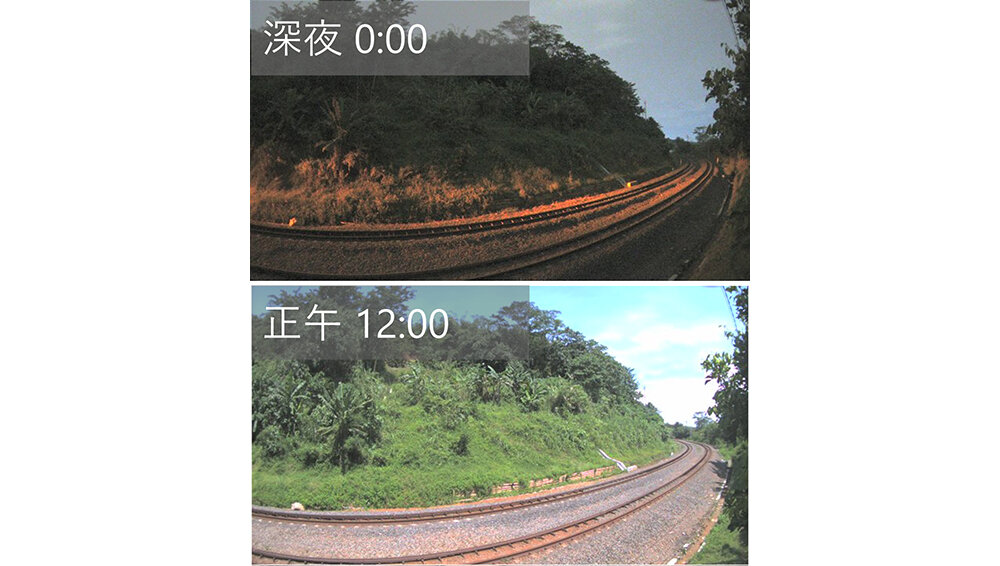 実証実験の結果として、遠隔から安定的に高精度な傾斜角データを取得できたことにより、インフラ管理者が危険な現場に赴くことなく、斜面の状況を高精度な計測データとして監視できることを確認した。また、ゼロエナジー高感度カメラによって、昼夜を問わず鮮明な画像を取得できた。実際の現場で撮影されたモニタリング画像を図4に示す。