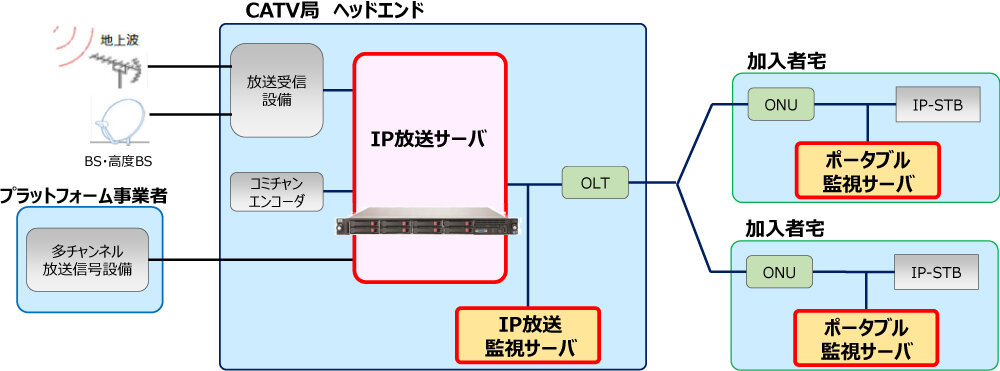 CATVのIP放送サービスに必要となるIP放送サーバーとIP放送監視システムについて述べた。IP放送の運用仕様と品質の技術基準に対応した集約効率の高いコンパクトなIP放送システムが実現できる。