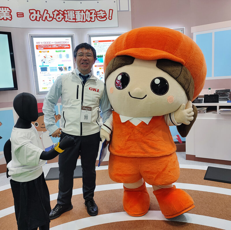 「EDIX東京」は、学校・教育機関などを対象とした日本最大の教育分野展示会です。主催者の発表では3日間で23,858名のご来場ということでした。本展では、「教育の可能性を紡ぐ 新たな可能性の起点に」をキーワードに教育DXやICT機器など教育の課題に寄り添った7つのテーマで構成され、活気のあるイベントでした。OKIは、自社ブースと富士電機ITソリューションズ株式会社様(外部サイト)のブースに「体育ICTソリューション」を展示しました。また、株式会社ハッピースマイル様(外部サイト)のエミちゃんも遊びに来てくれて大いに盛り上がりました。