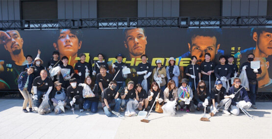 群馬クレインサンダーズのホームアリーナで清掃活動と試合応援の社員イベントを開催