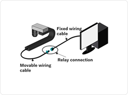 With the advancement of production automation in the manufacturing industry using robots and industrial FA equipment in recent years, large numbers of high-resolution cameras are increasingly being incorporated into production and inspection equipment. The industrial equipment used for visual inspections and component mounting now typically features a mechanism in which cameras move to follow the target objects such as manufactured products. This has created growing demand for cables with excellent durability to withstand such movements.