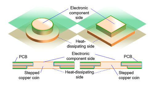 OKI Develops Printed Circuit Board Technology with Stepped Copper Coin Insertion to Achieve 55 Times Better Heat Dissipation in Outer Space