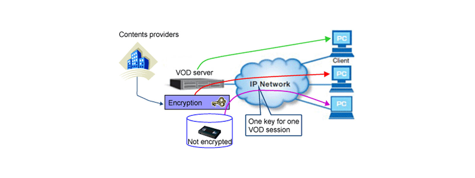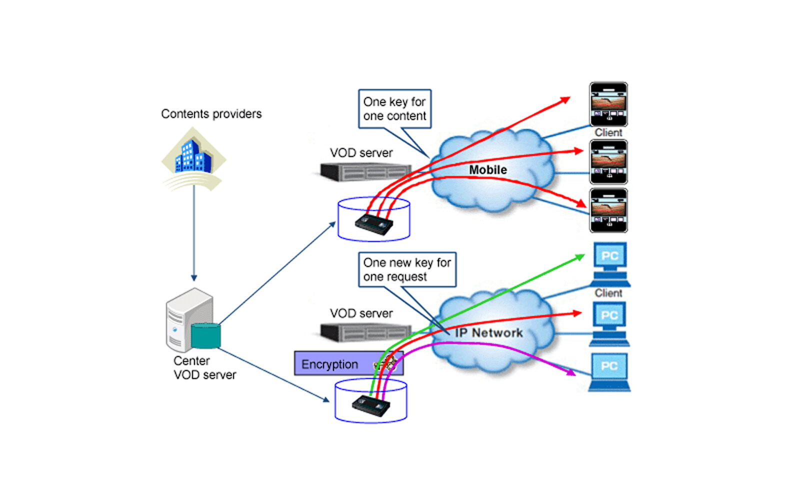 - Pre-encryption method encrypts contents while the center server delivers contents to local servers reducing encryption costs.