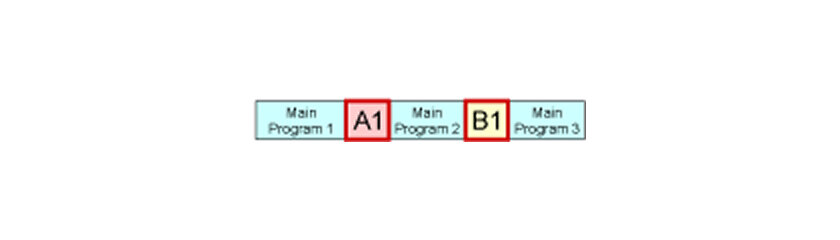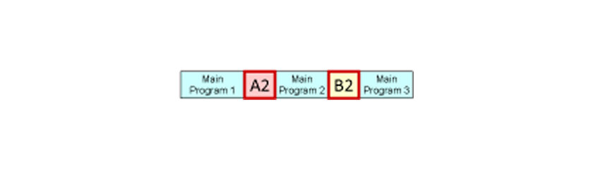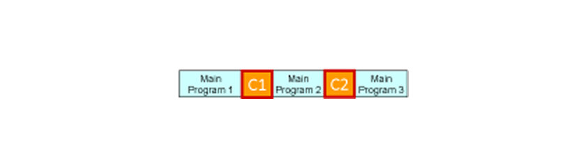At time of program delivery, series of CM can be inserted before, after or between main programs without changing main program structure.