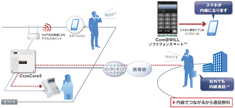 スマートフォン内線「Com@WILLソフトフォンスマート」のご利用イメージ